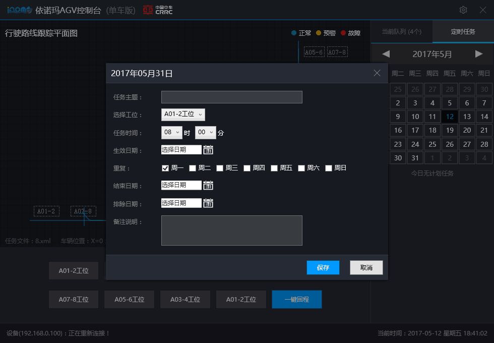 說明:顯示最近一段時間內的AGV執行任務情況。